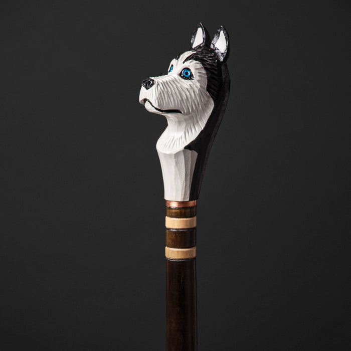 Hundekopf-Gehstock - Husky-Gehstock, handgefertigt