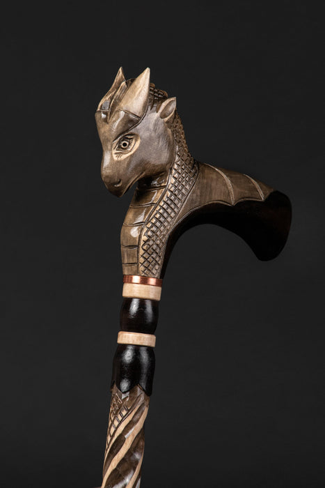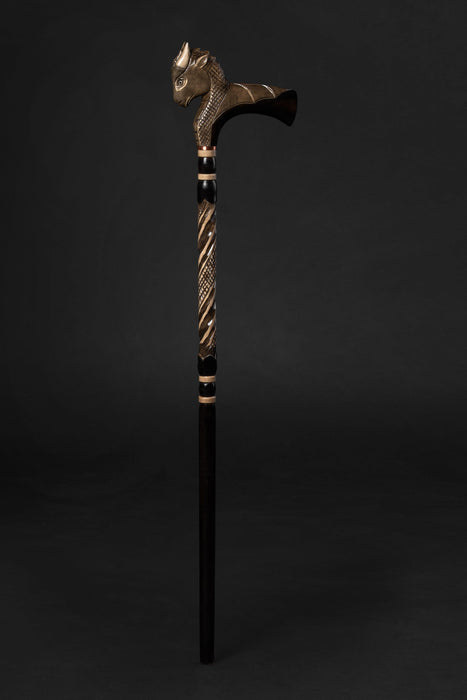 Gehstock mit Drachengriff, handgeschnitzt, aus Holz, handgefertigt