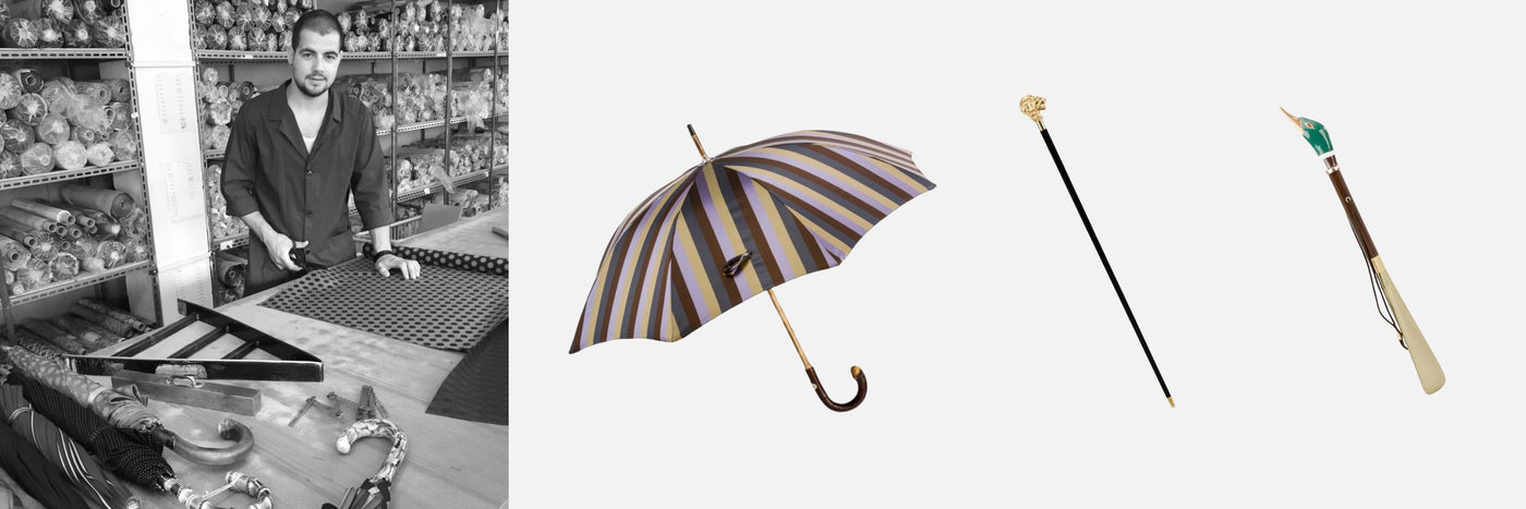 Cet artisan est spécialisé dans la fabrication de parapluies, et fabrique également des cannes de marche et des chausse-pieds.