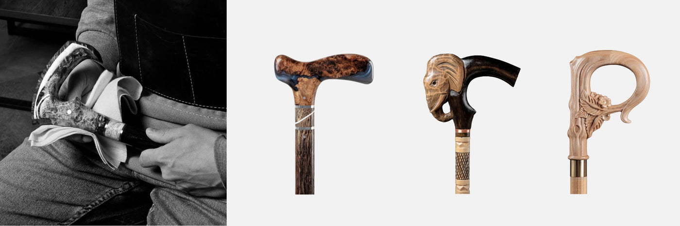 Cet artisan se spécialise dans la fabrication de cannes de marche aux modèles variés, allant de la sculpture à la peinture à la main.
