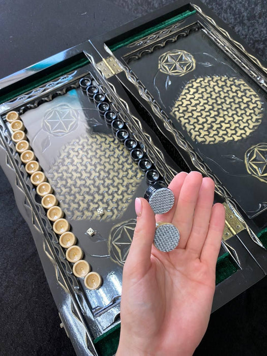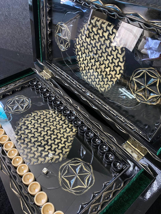 Backgammon prestigieux en bois fait main avec plateau en verre
