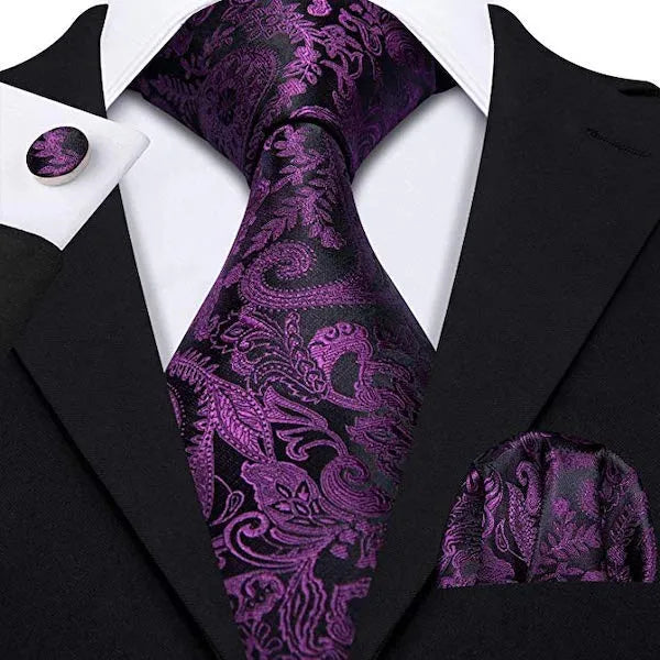 Cravate en soie à motif cachemire violet et noir pour homme - Accessoire élégant et raffiné