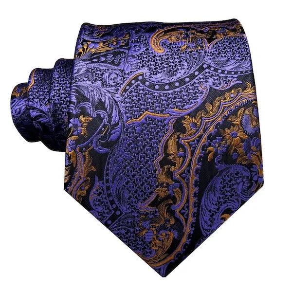 Cravate en soie à fleurs violettes et dorées pour homme élégant