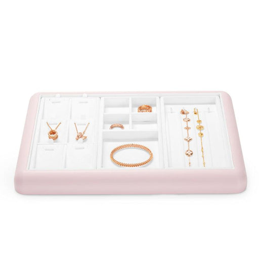 Présentoir à bagues, pendentifs et bracelets en similicuir rose