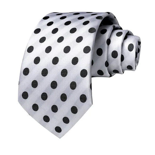 Cravate en soie à pois pour homme, coloris blanc et noir classiques