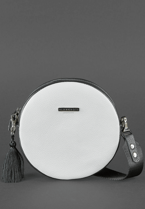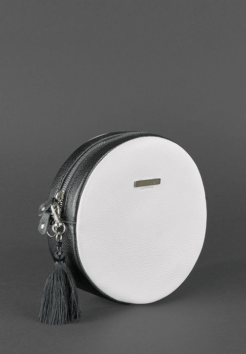 Sac rond élégant en cuir pour femme avec pompon décoratif