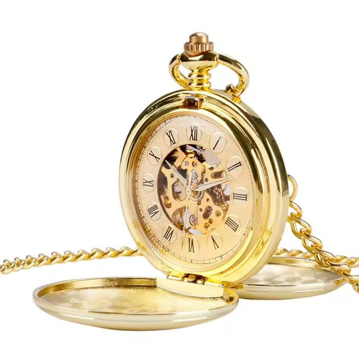 Gold Double Hunter Pocket Watch - Roman Numerals Hand Wind Luxury